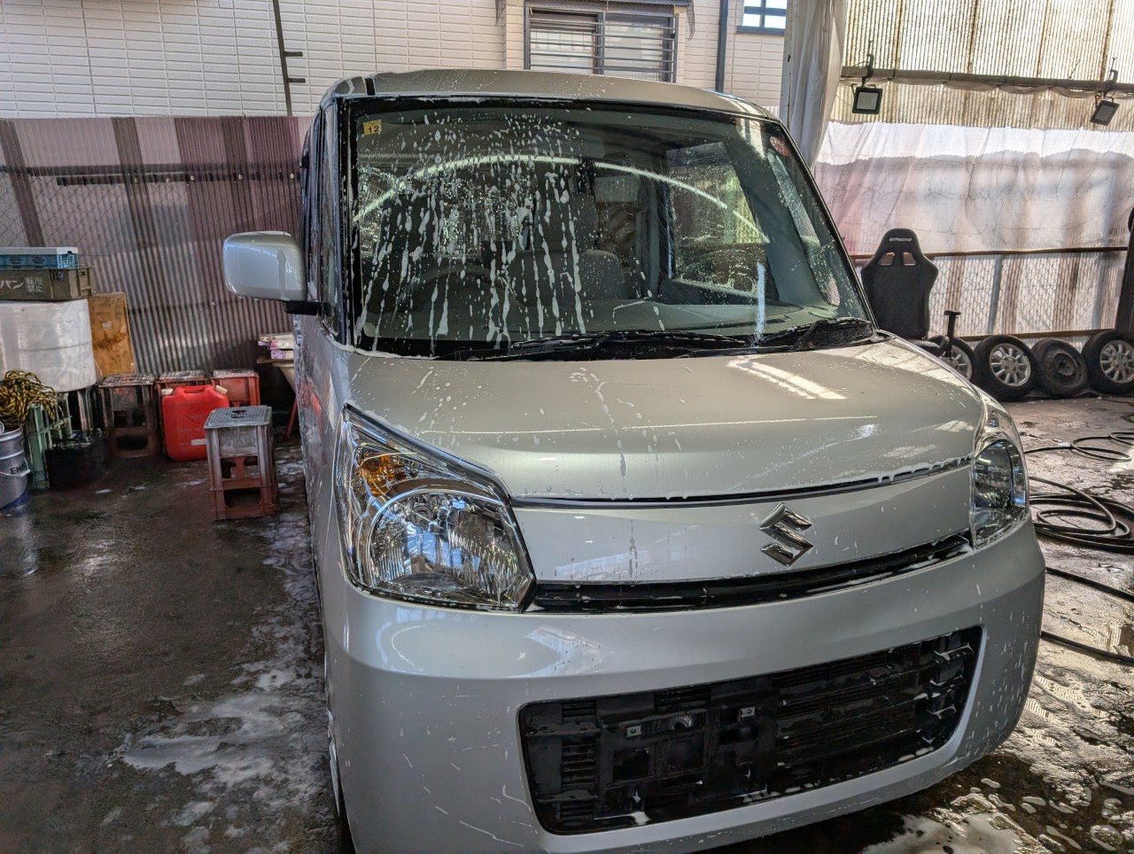 展示前の下準備。スペーシアをボディ磨き&車内清掃しました
