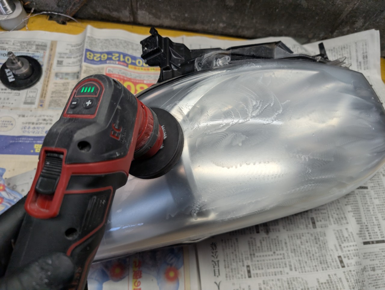 ヘッドライトの研磨自体は、車両に取り付けたままでも作業は可能です。