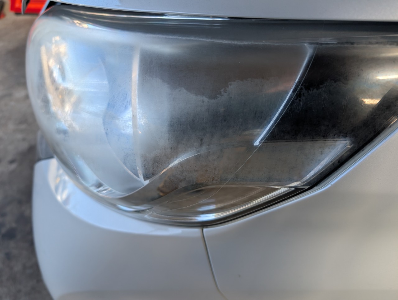 そこで今回は、ヘッドライトのくすみ除去を行い、あわせてクリア塗装によるコーティングを施工しました。