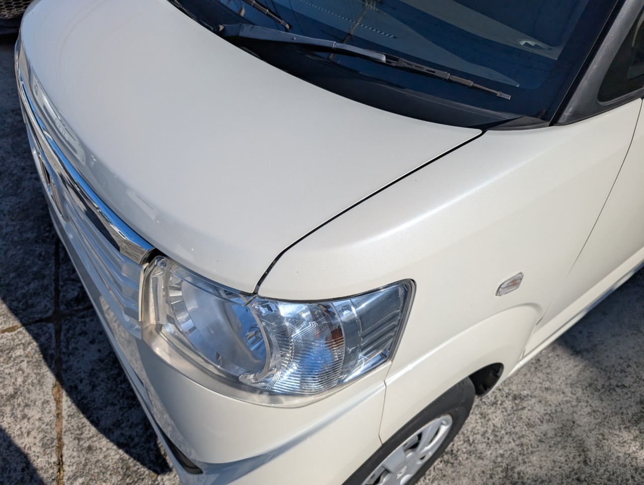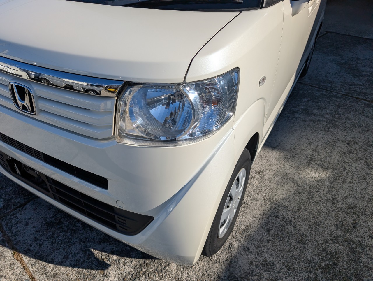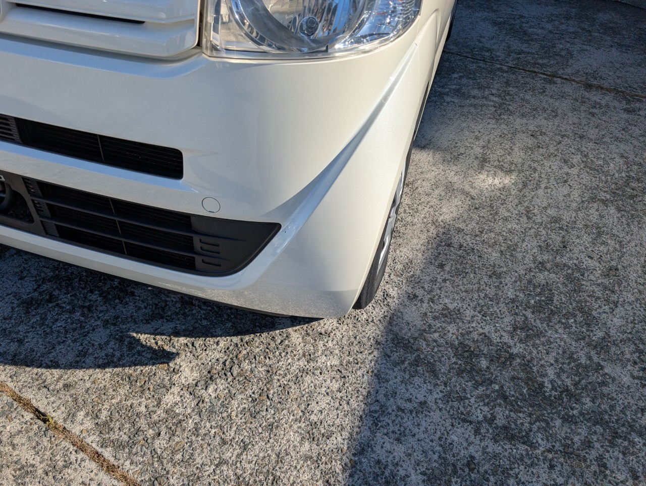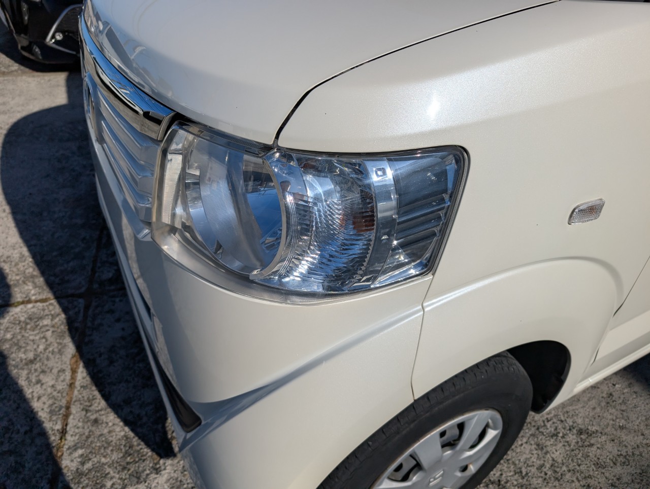 左の下側の外装に凹みサビあり。板金すると原価が高くなるのでタッチペンで補修します。 - ヘッドライドをクリア塗装しましたので、数年間は黄ばみとは無縁かと思います。