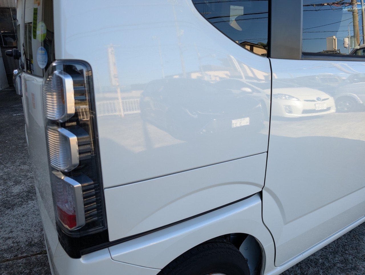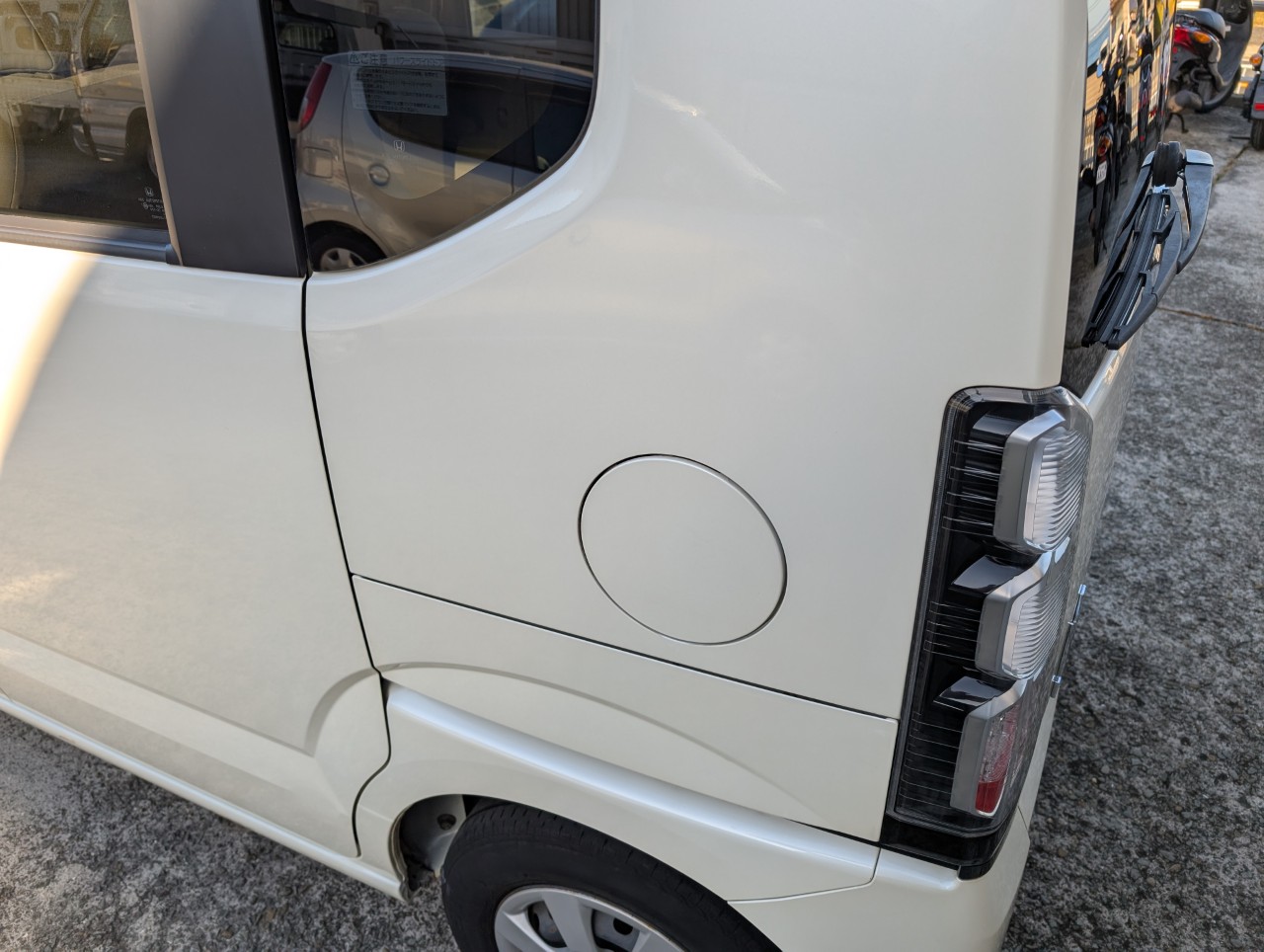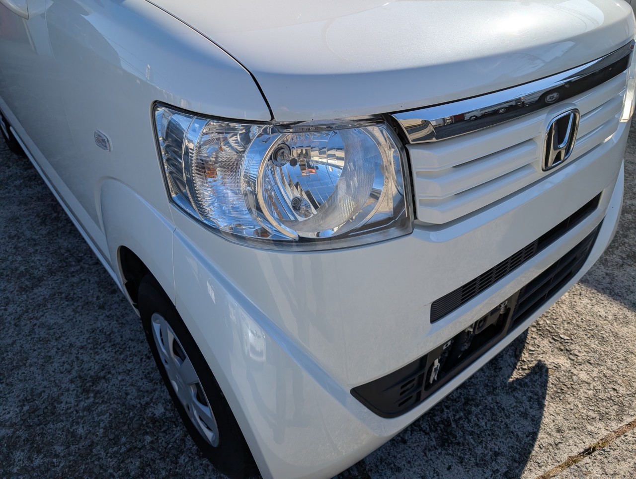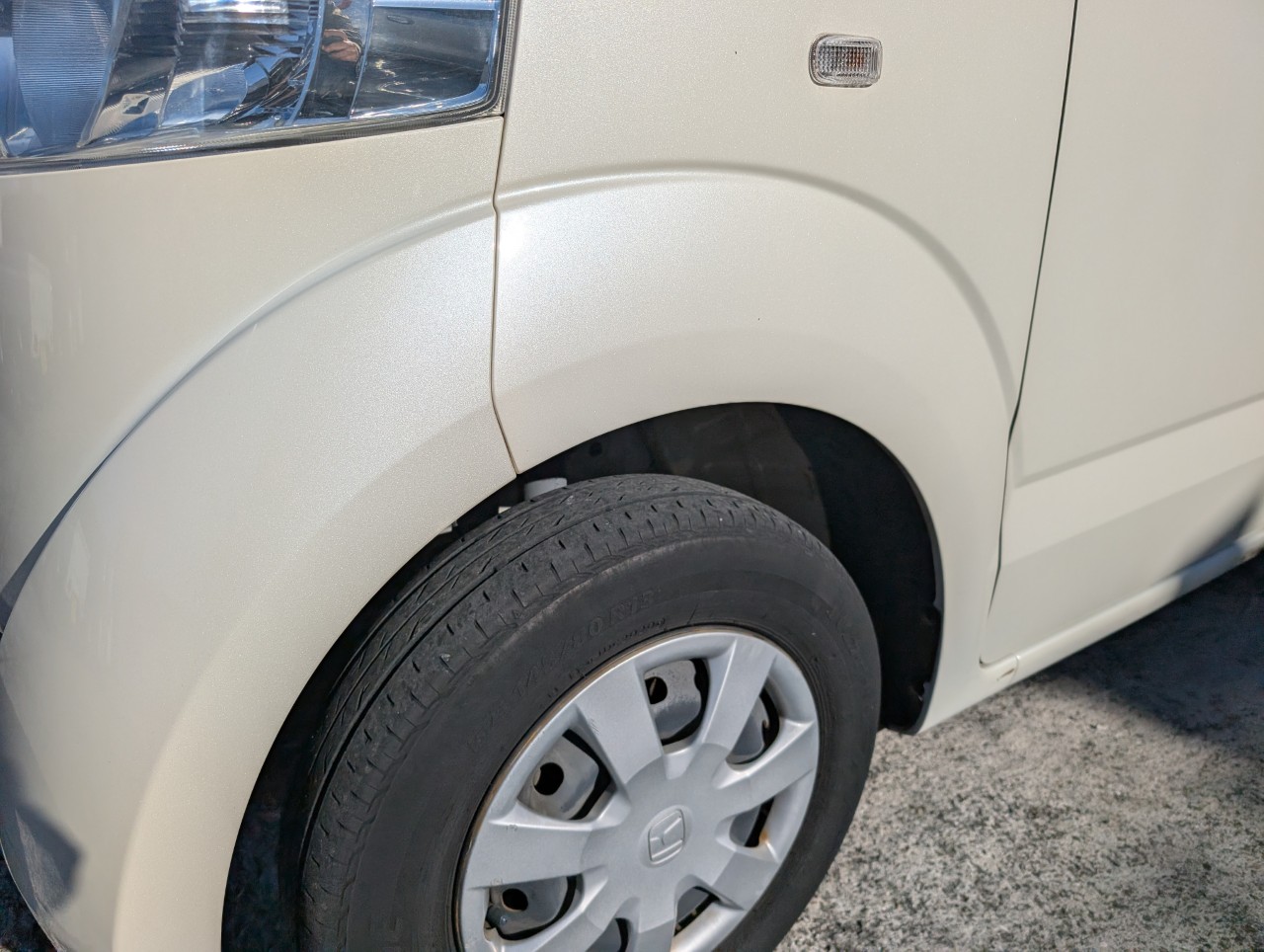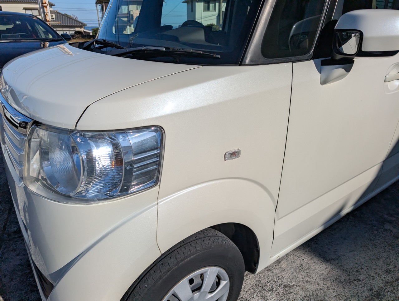 左の下側の外装に凹みサビあり。板金すると原価が高くなるのでタッチペンで補修します。 - ヘッドライドをクリア塗装しましたので、数年間は黄ばみとは無縁かと思います。