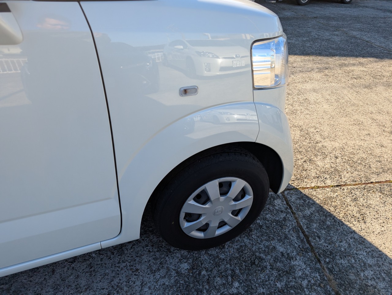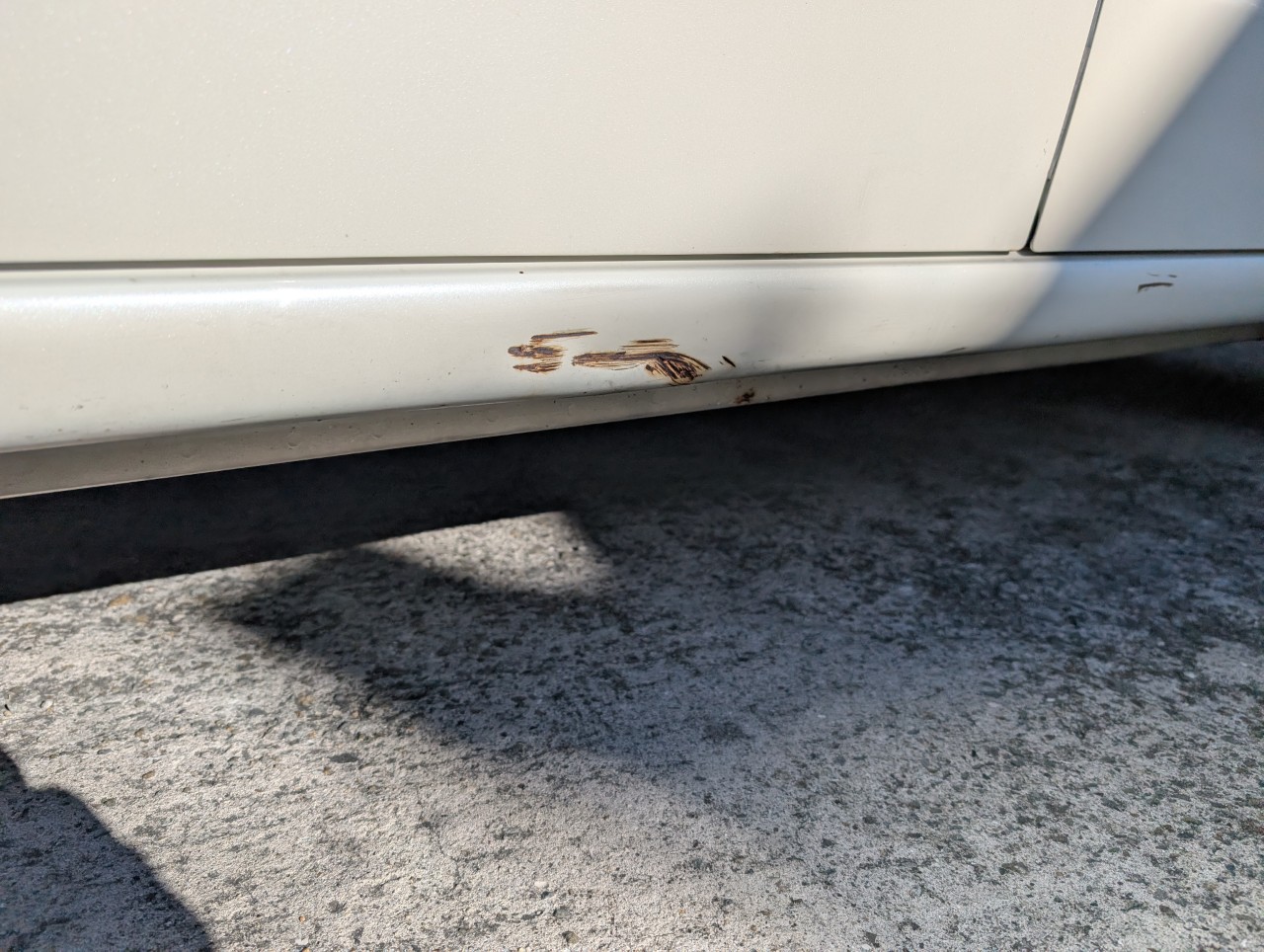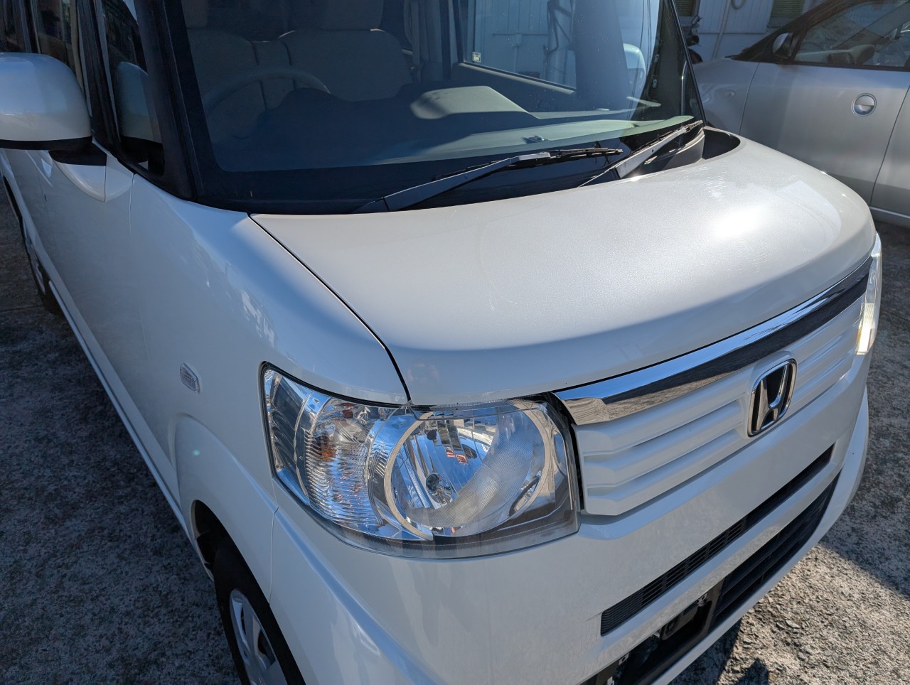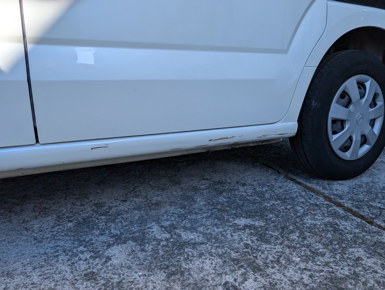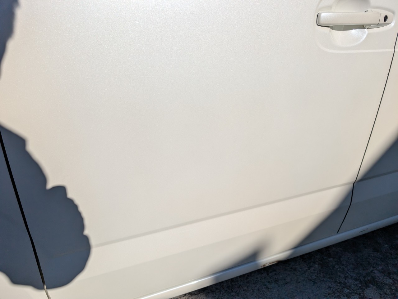 左の下側の外装に凹みサビあり。板金すると原価が高くなるのでタッチペンで補修します。 - ヘッドライドをクリア塗装しましたので、数年間は黄ばみとは無縁かと思います。