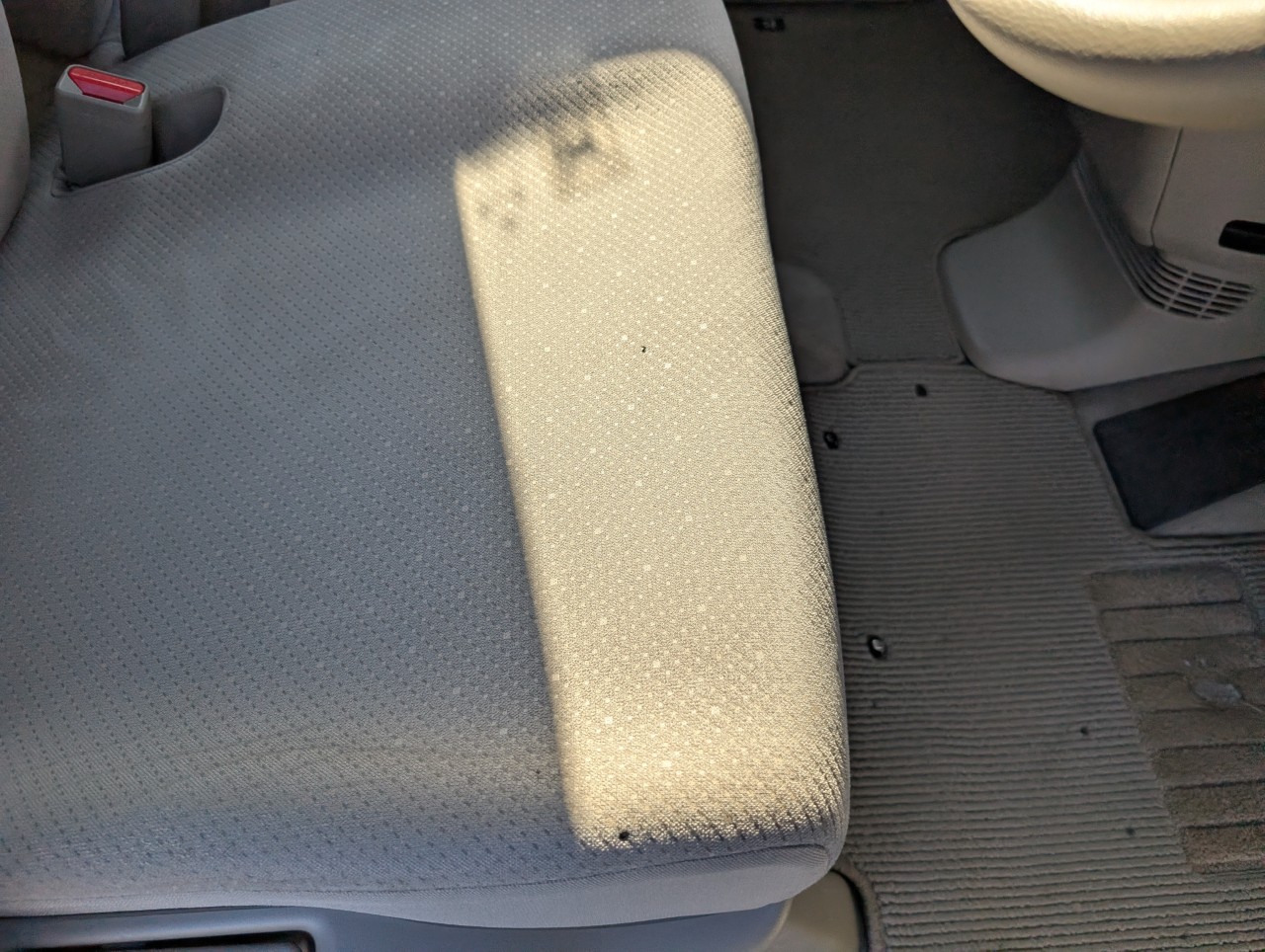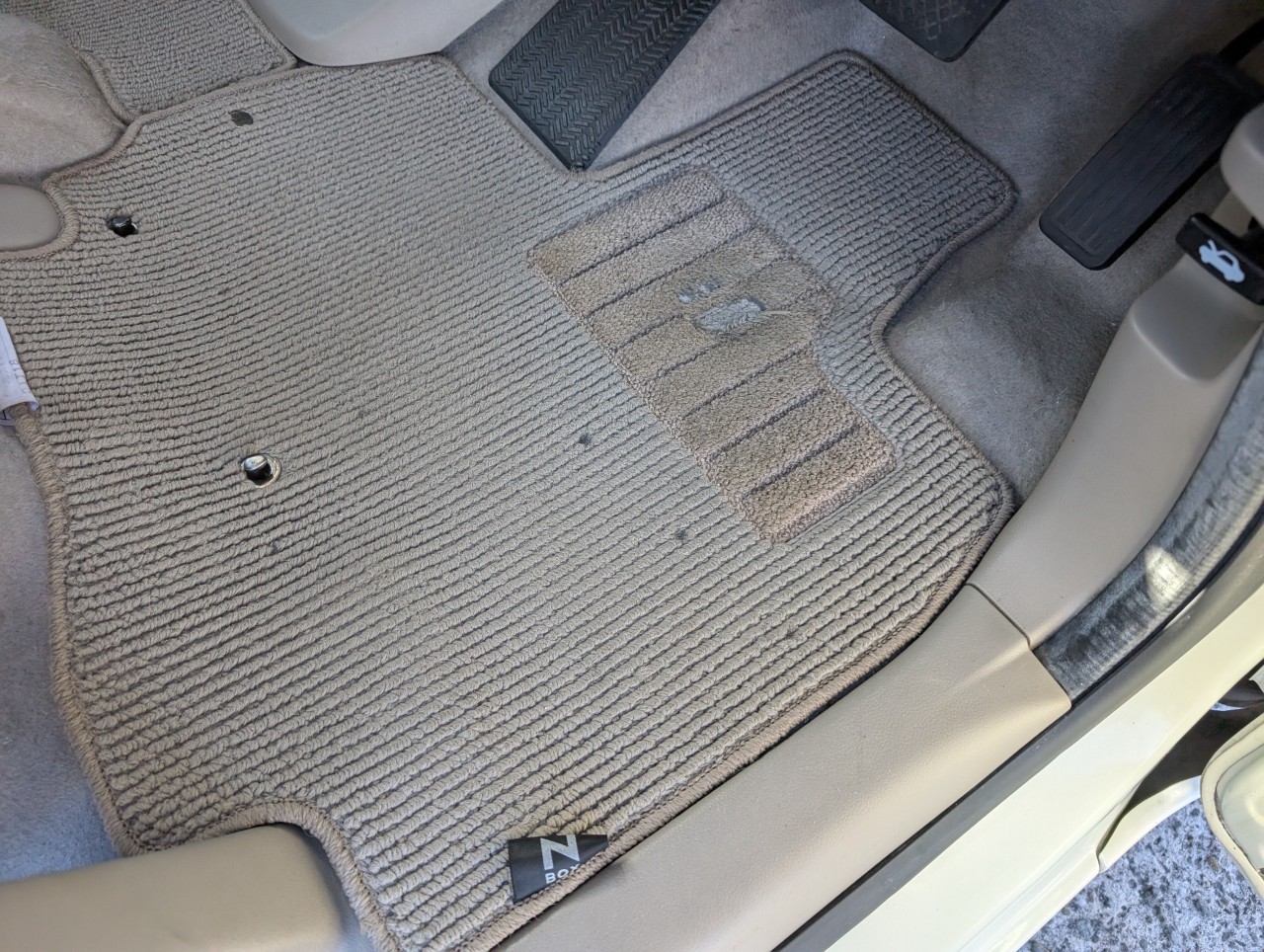 頑張って綺麗にしたので、まぁまぁ見れる形になりました! - 内装の焦げ穴と、マットが汚いです。洗浄しましたが、取り切れませんでした。
