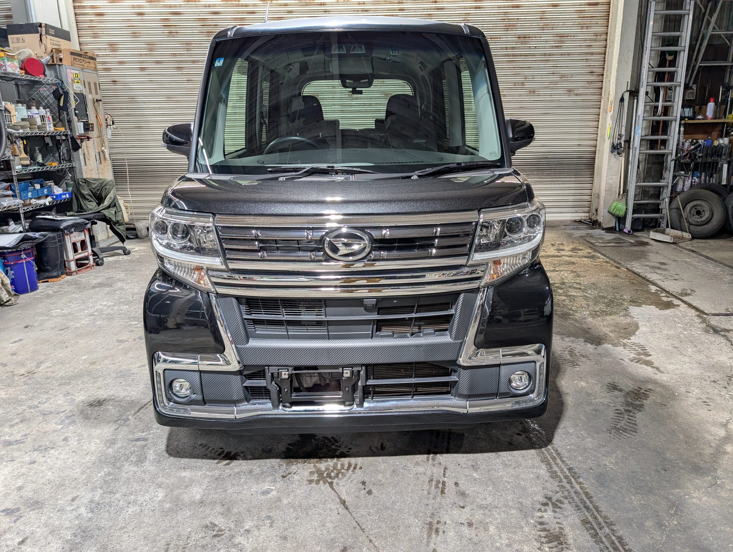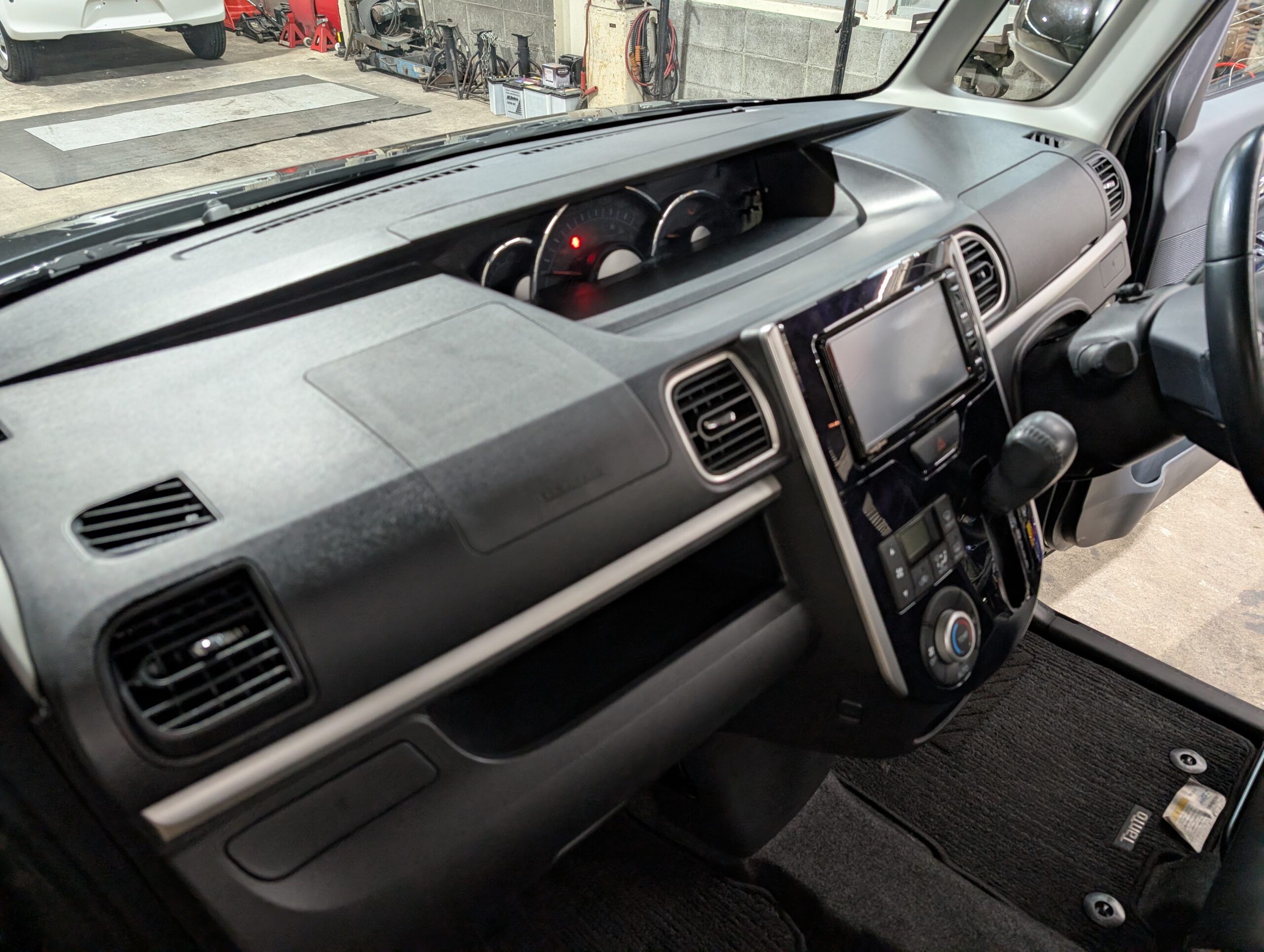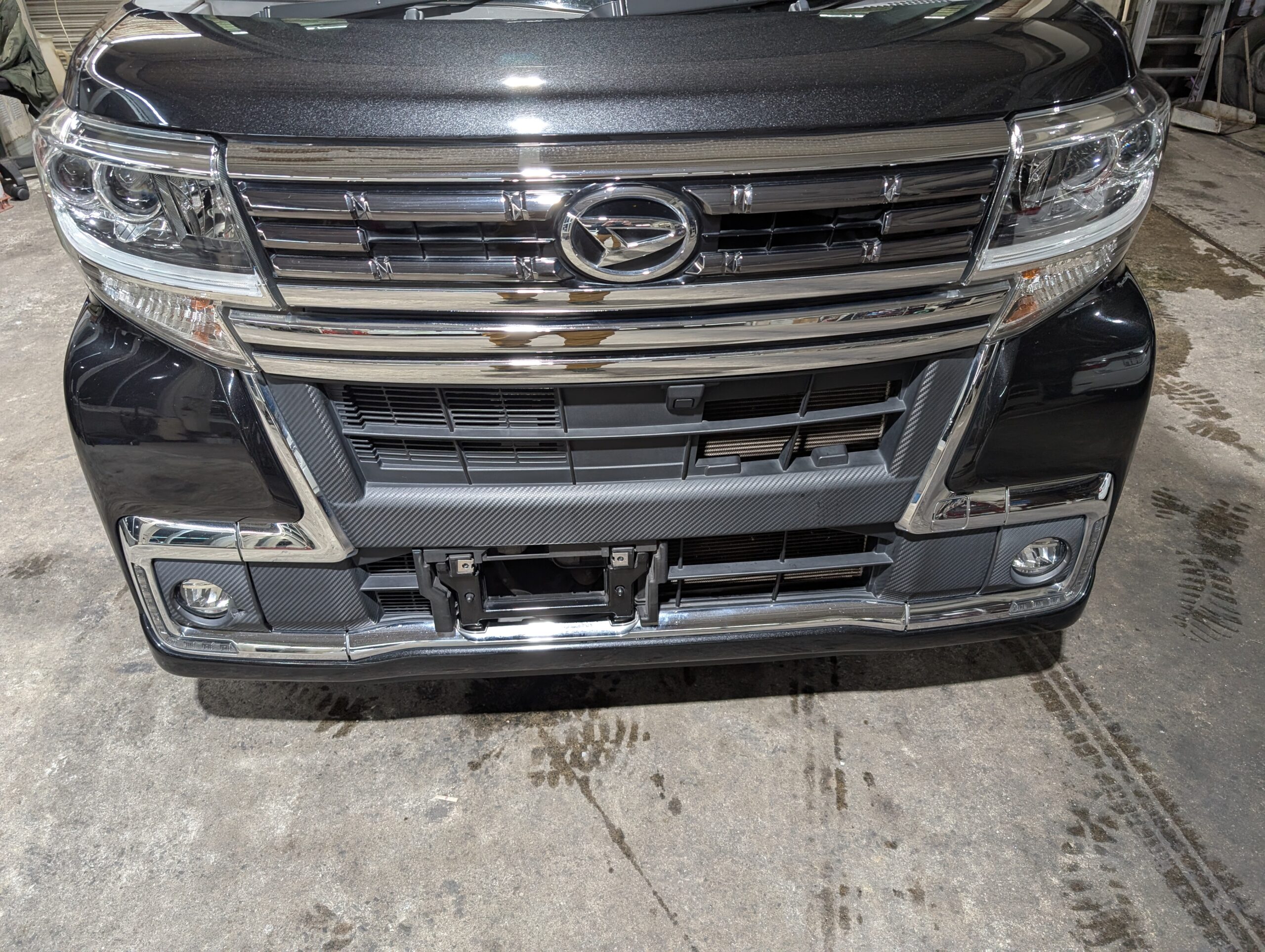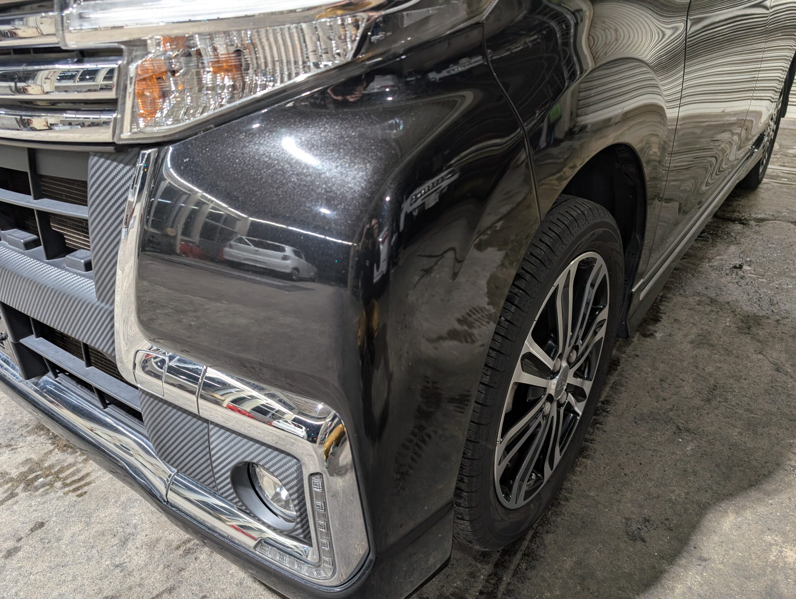 ドライブレコーダーも取り付けられているので、追加で必要なのは芳香剤くらいでしょうか。 - 外装は綺麗でしたが、フロントフォグ部分に凹みと破損あり。
