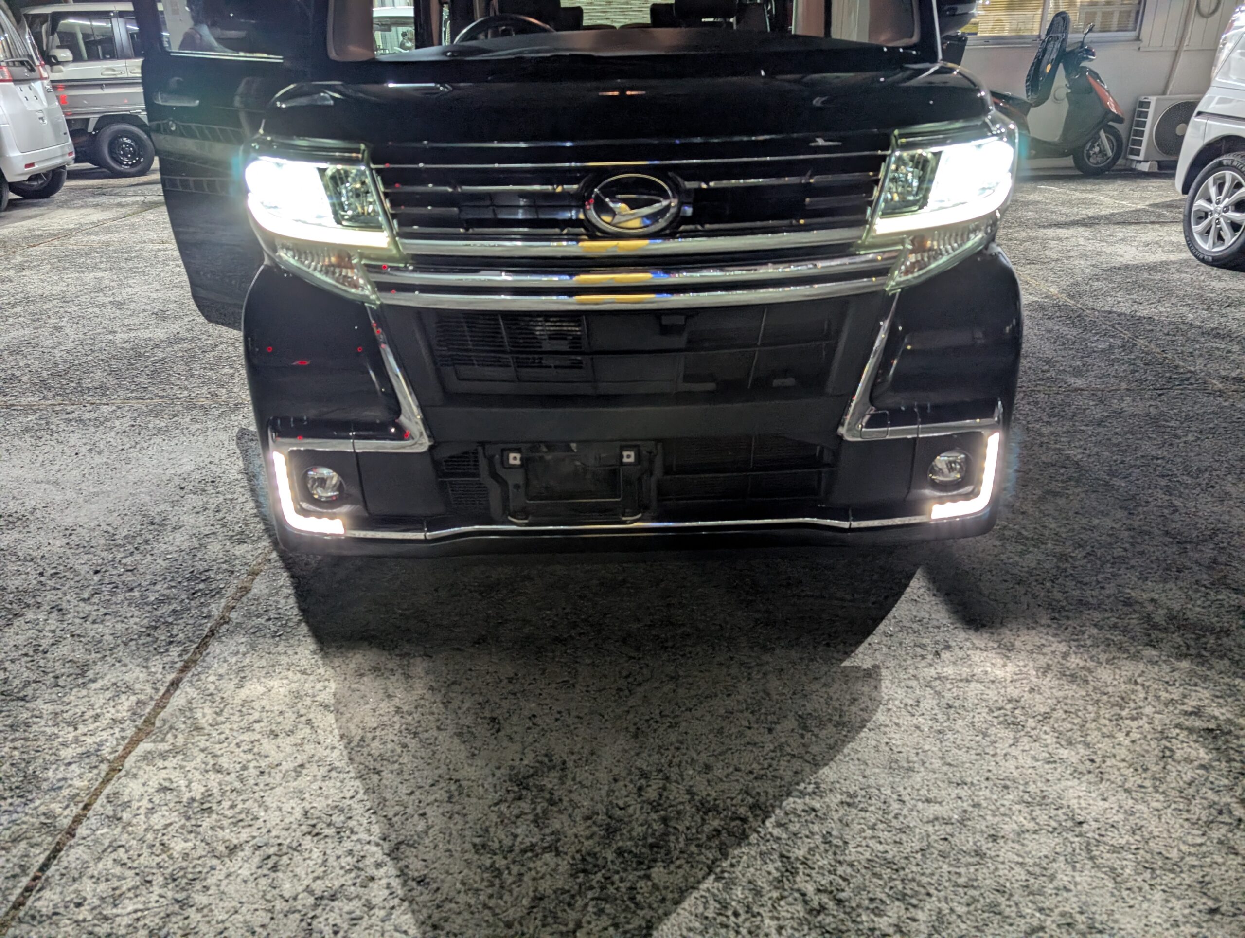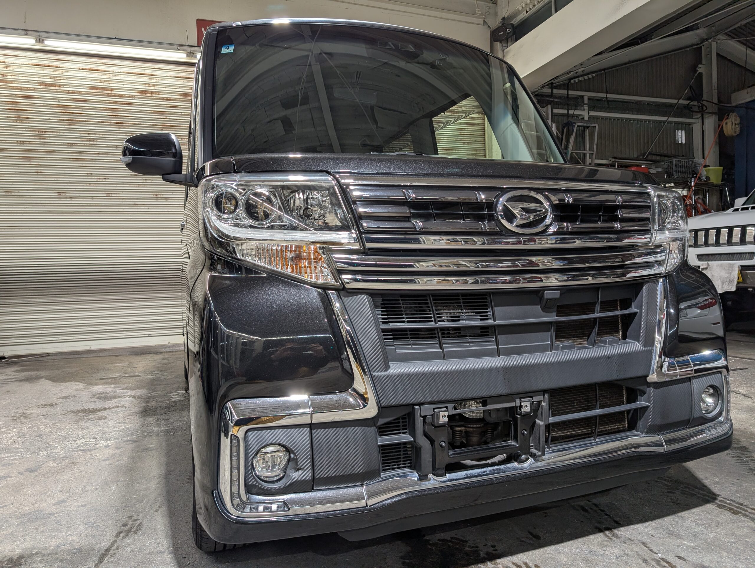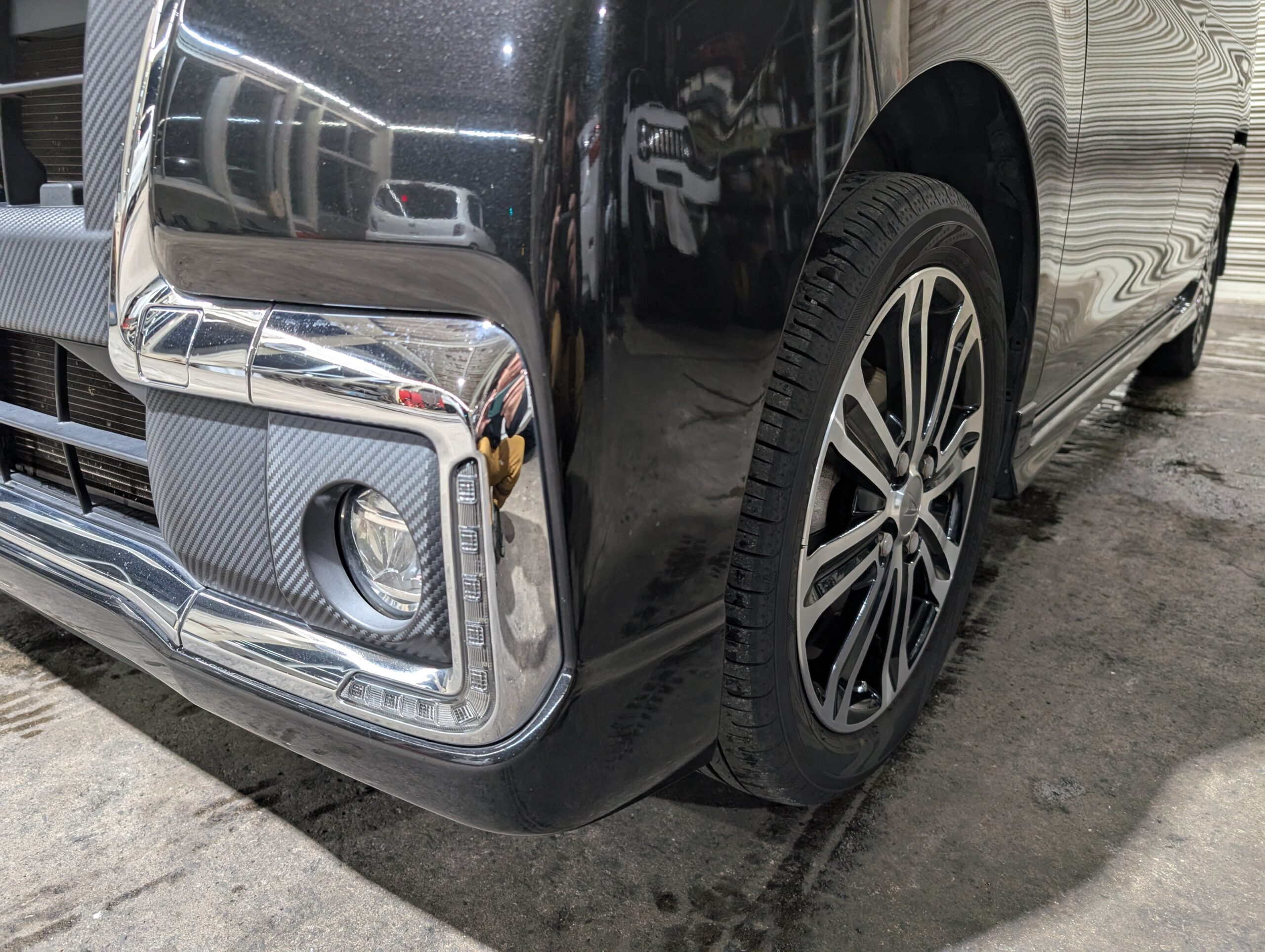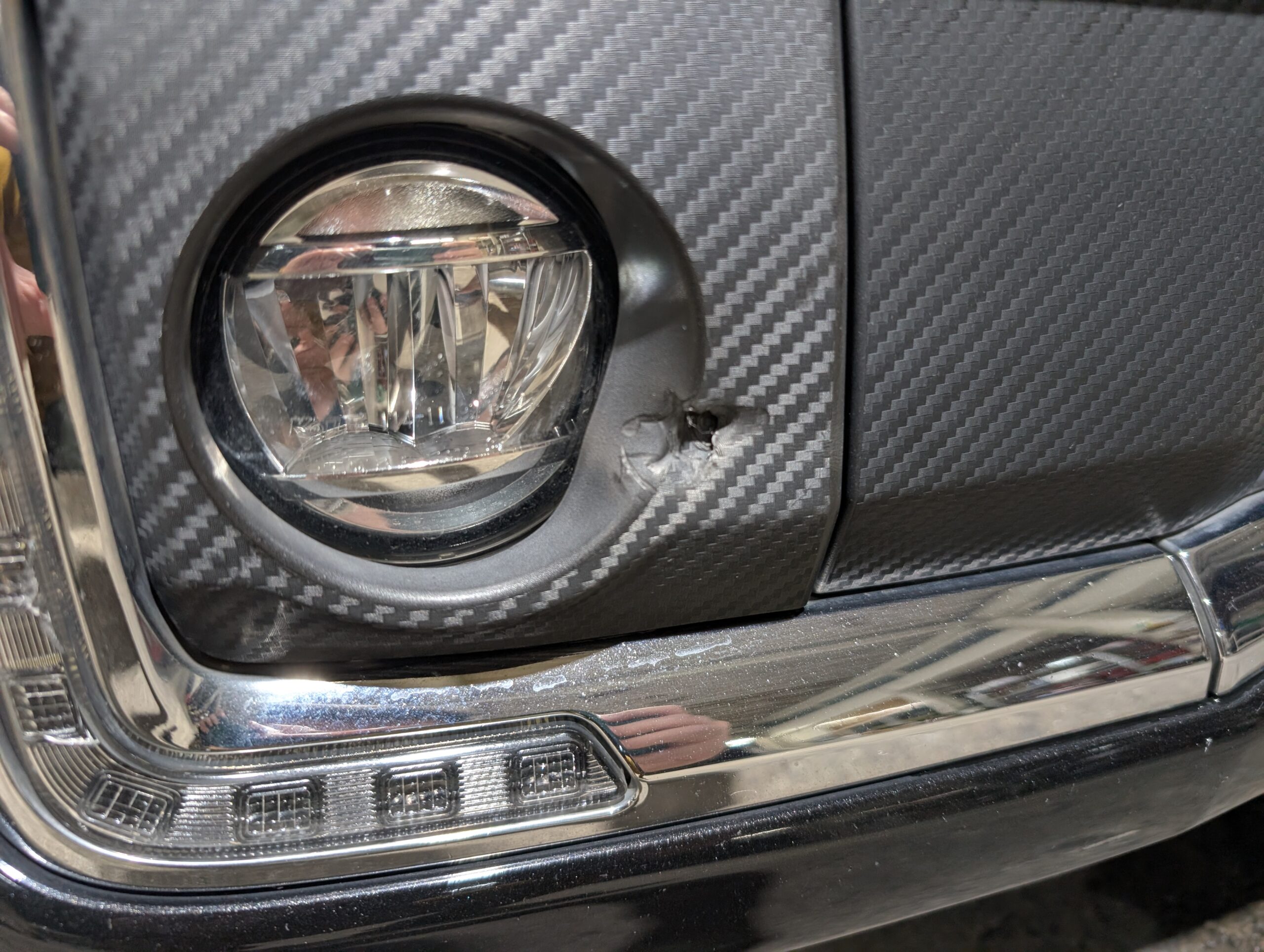 ドライブレコーダーも取り付けられているので、追加で必要なのは芳香剤くらいでしょうか。 - 外装は綺麗でしたが、フロントフォグ部分に凹みと破損あり。