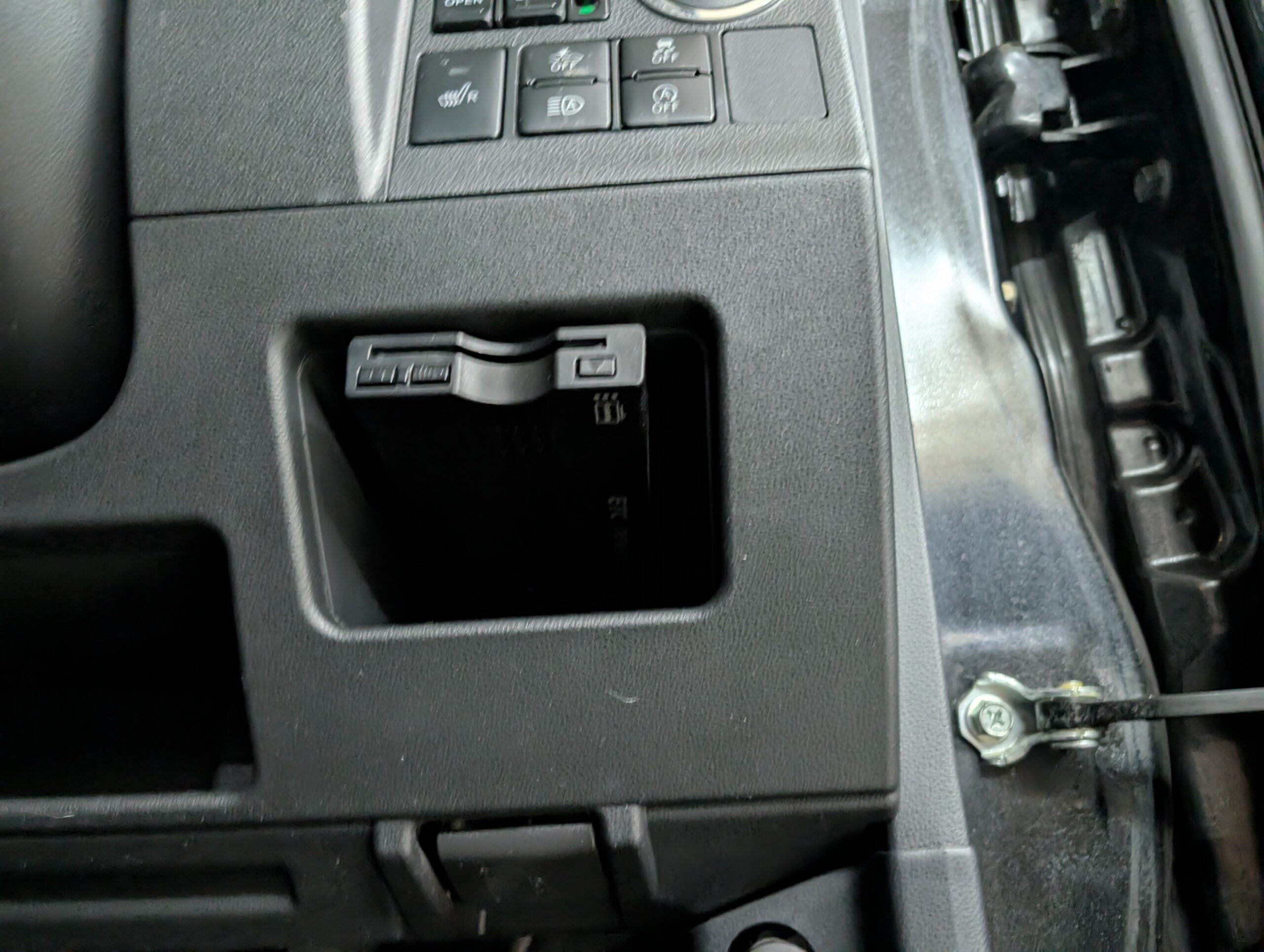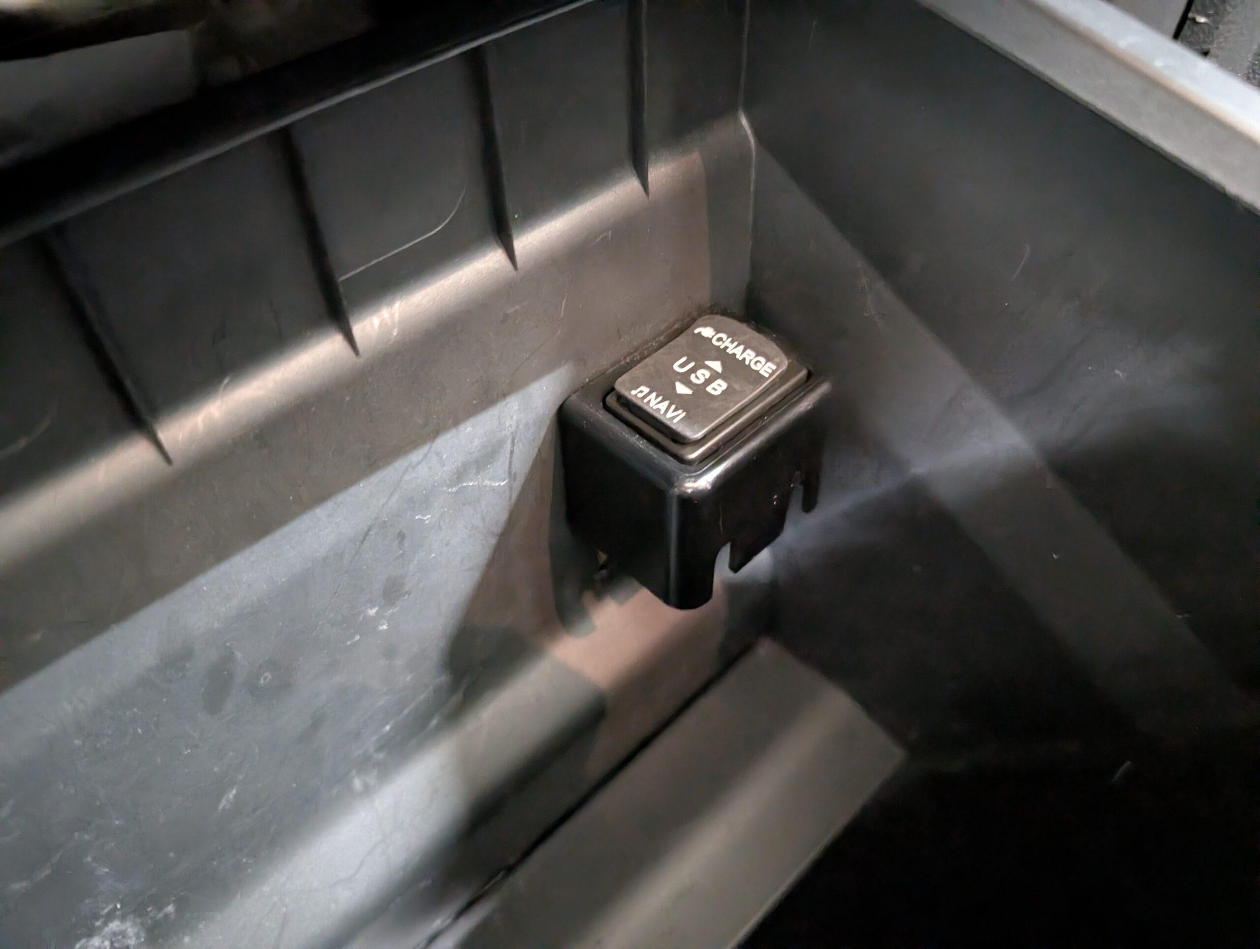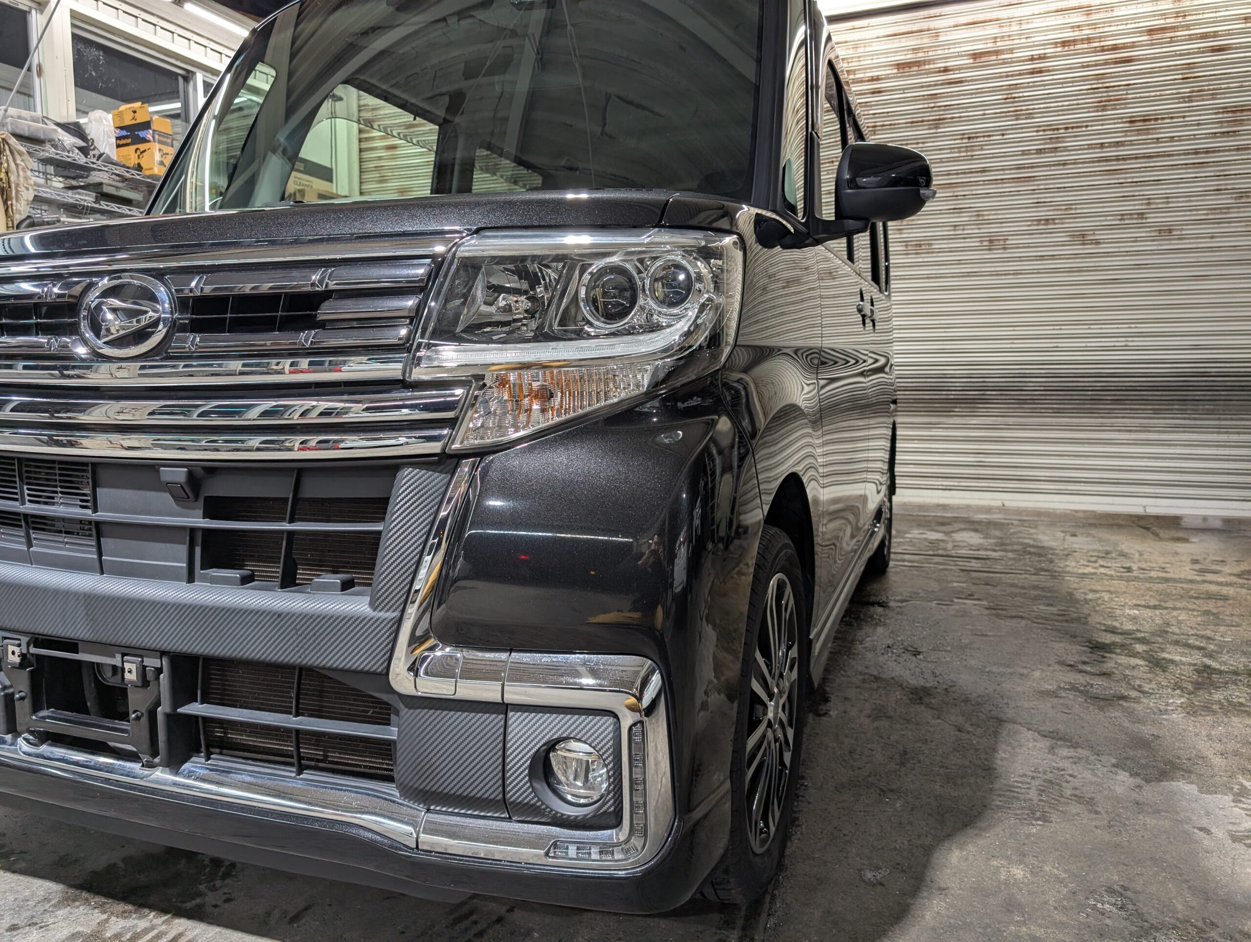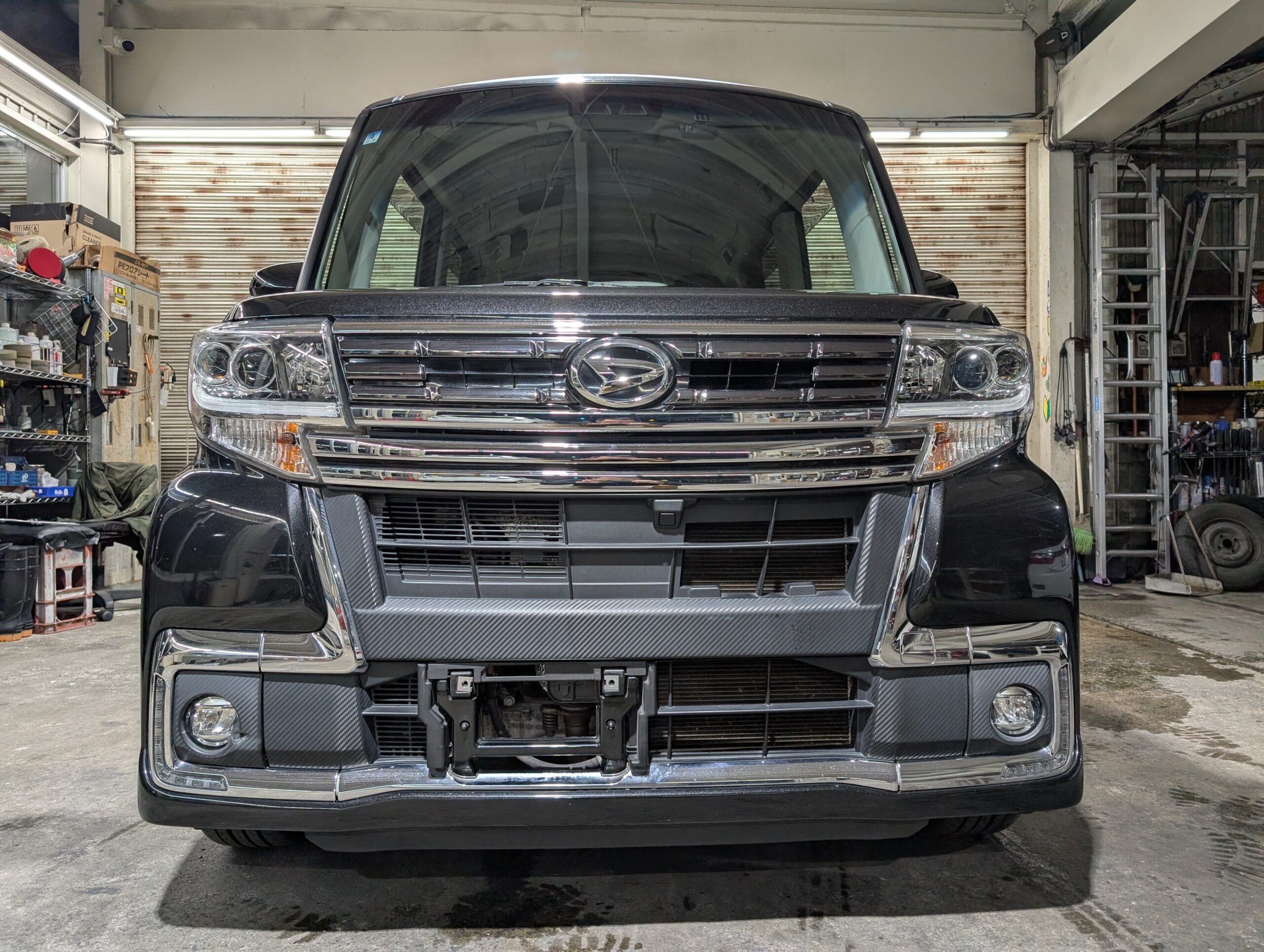 ドライブレコーダーも取り付けられているので、追加で必要なのは芳香剤くらいでしょうか。 - 外装は綺麗でしたが、フロントフォグ部分に凹みと破損あり。