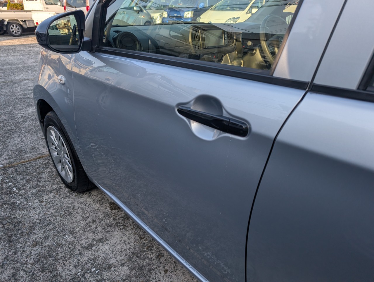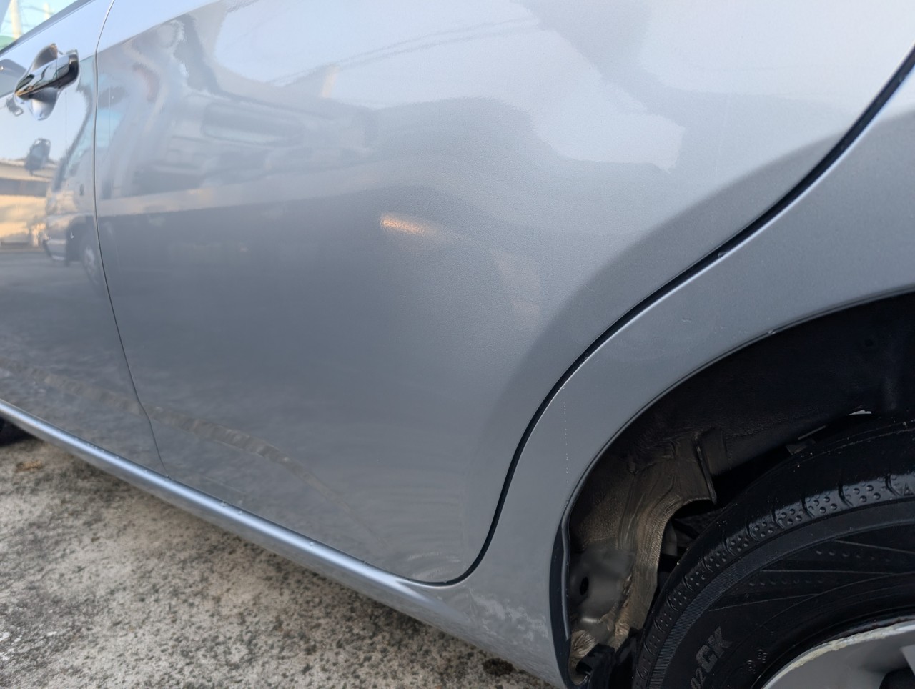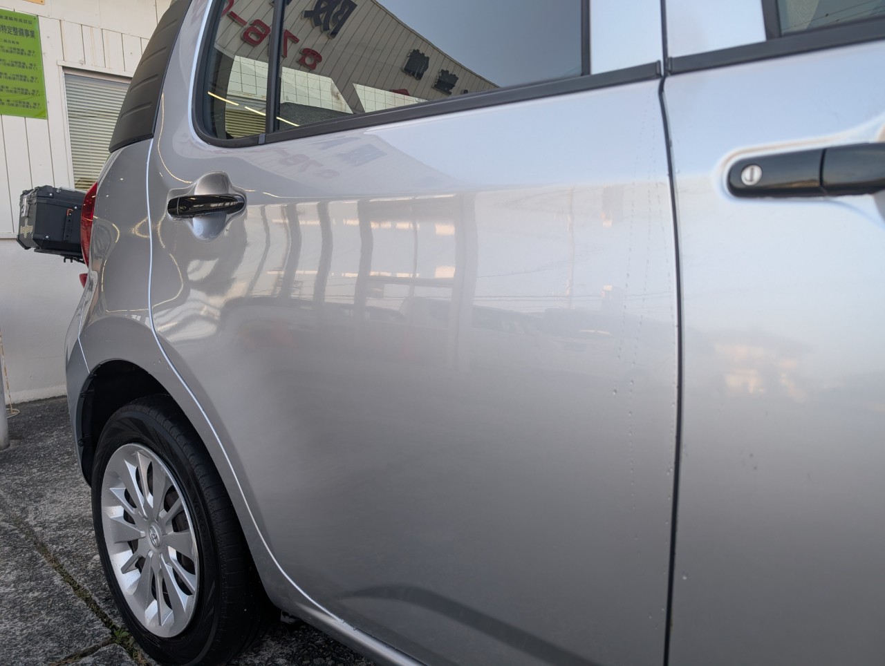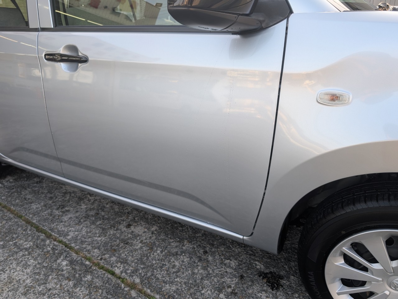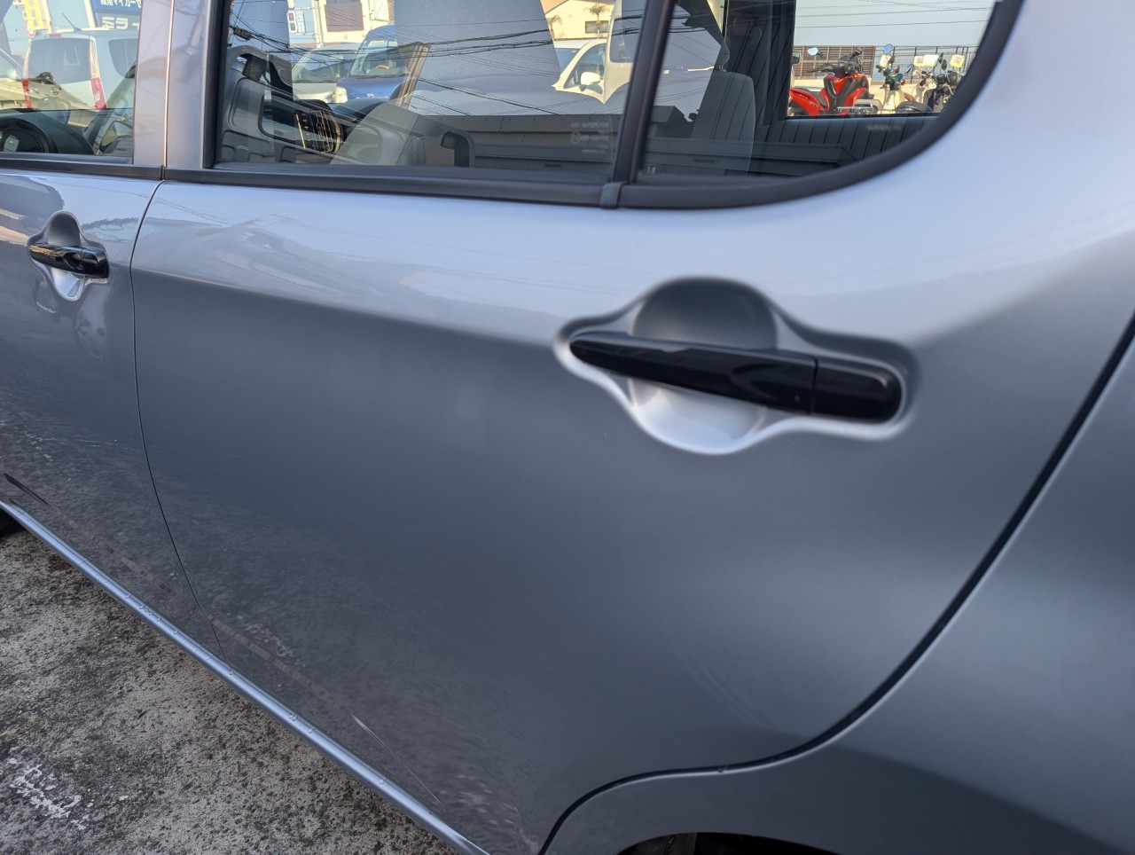 - 助手席側面に凹み傷があったため、助手席~後部座席まで板金塗装を行いました。