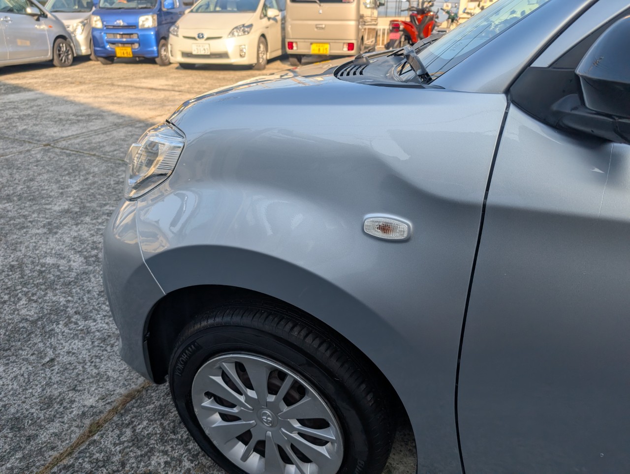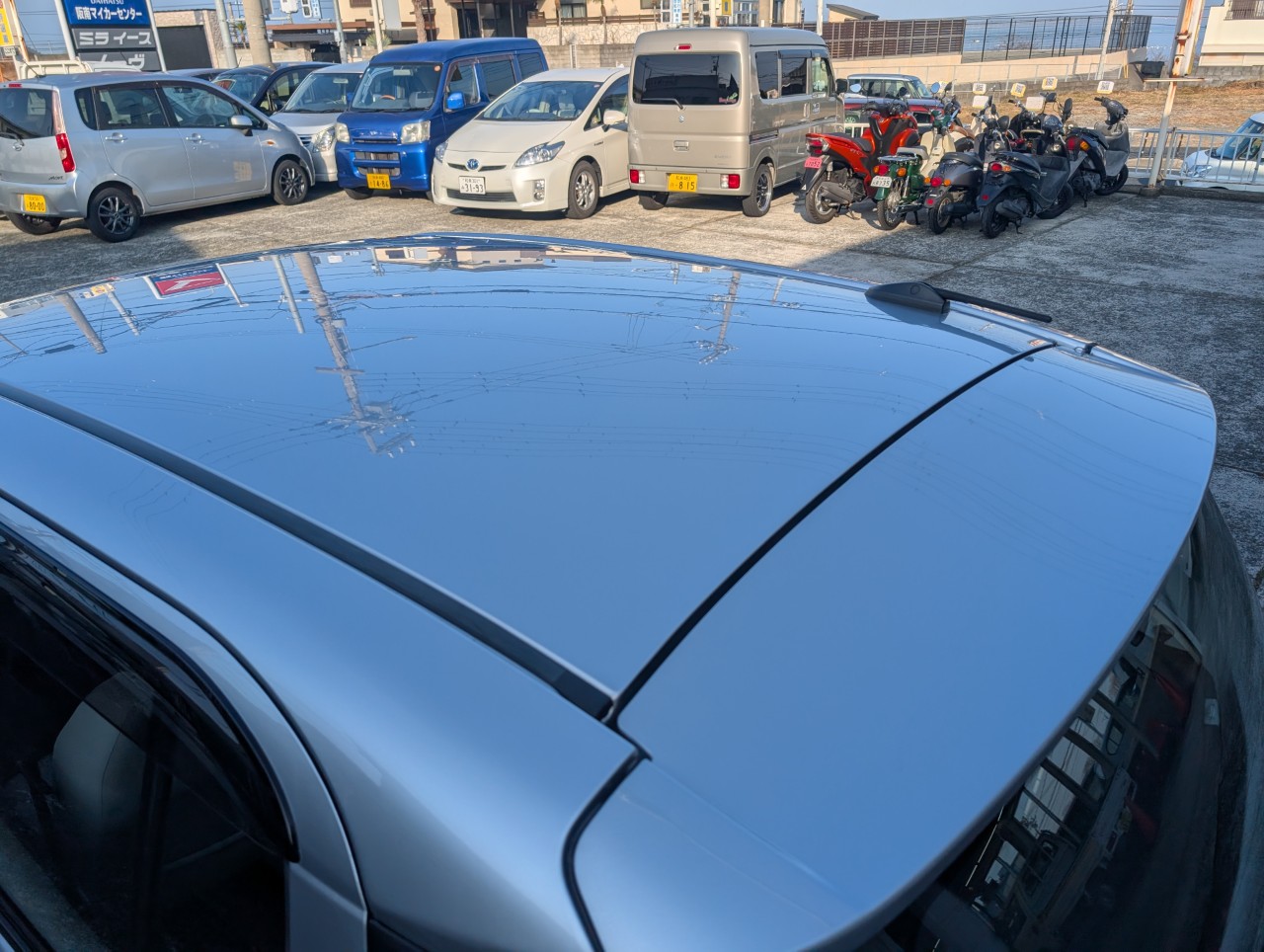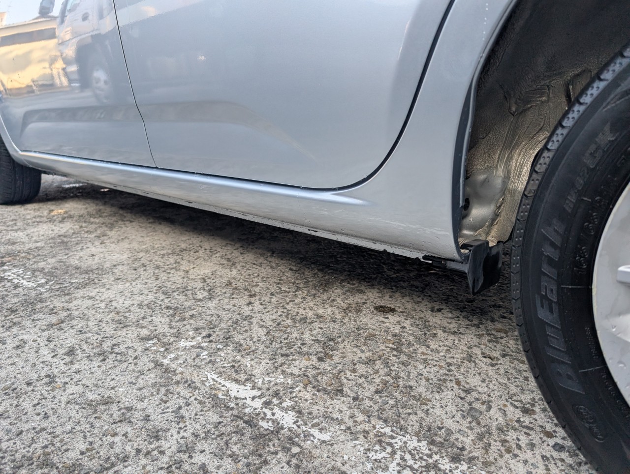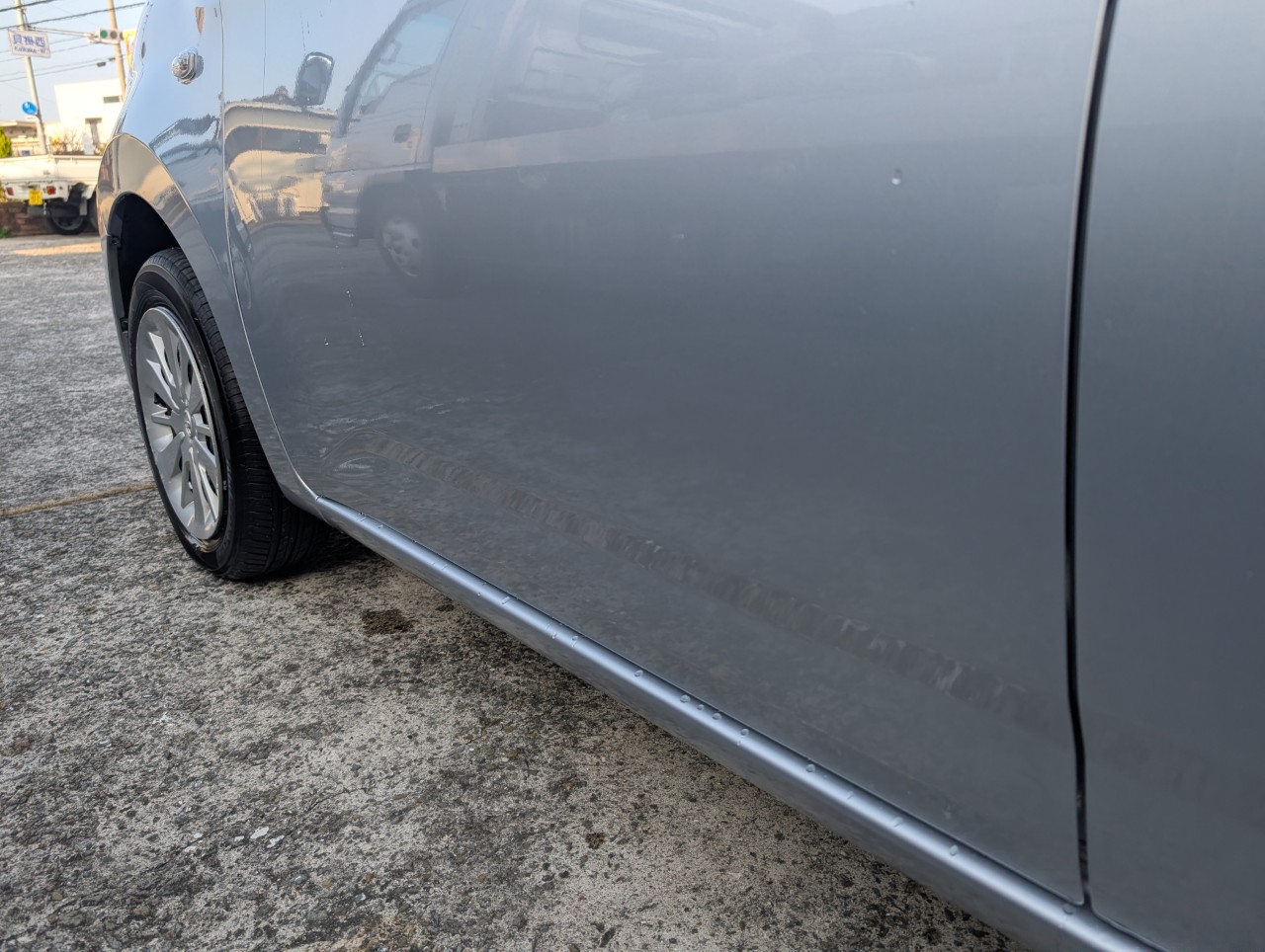 - 助手席側面に凹み傷があったため、助手席~後部座席まで板金塗装を行いました。