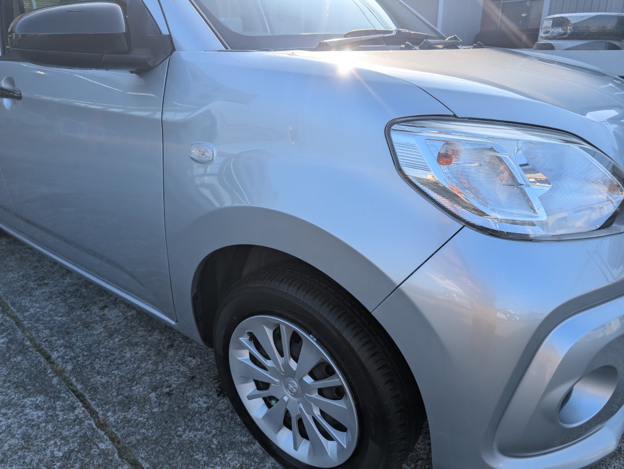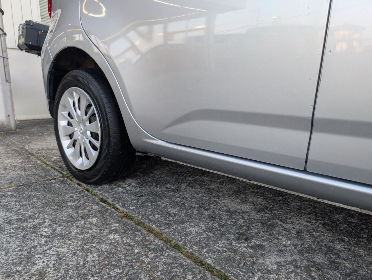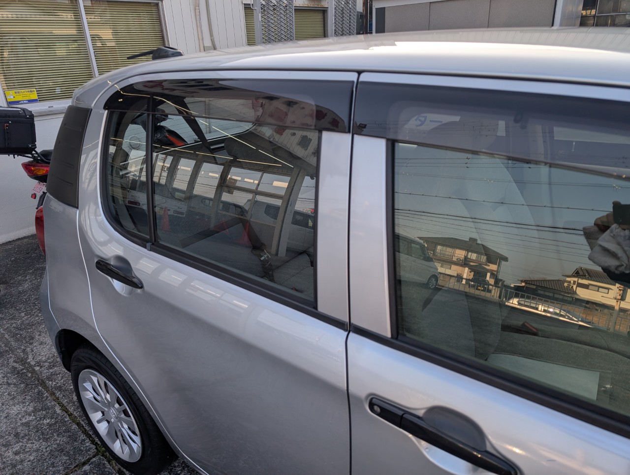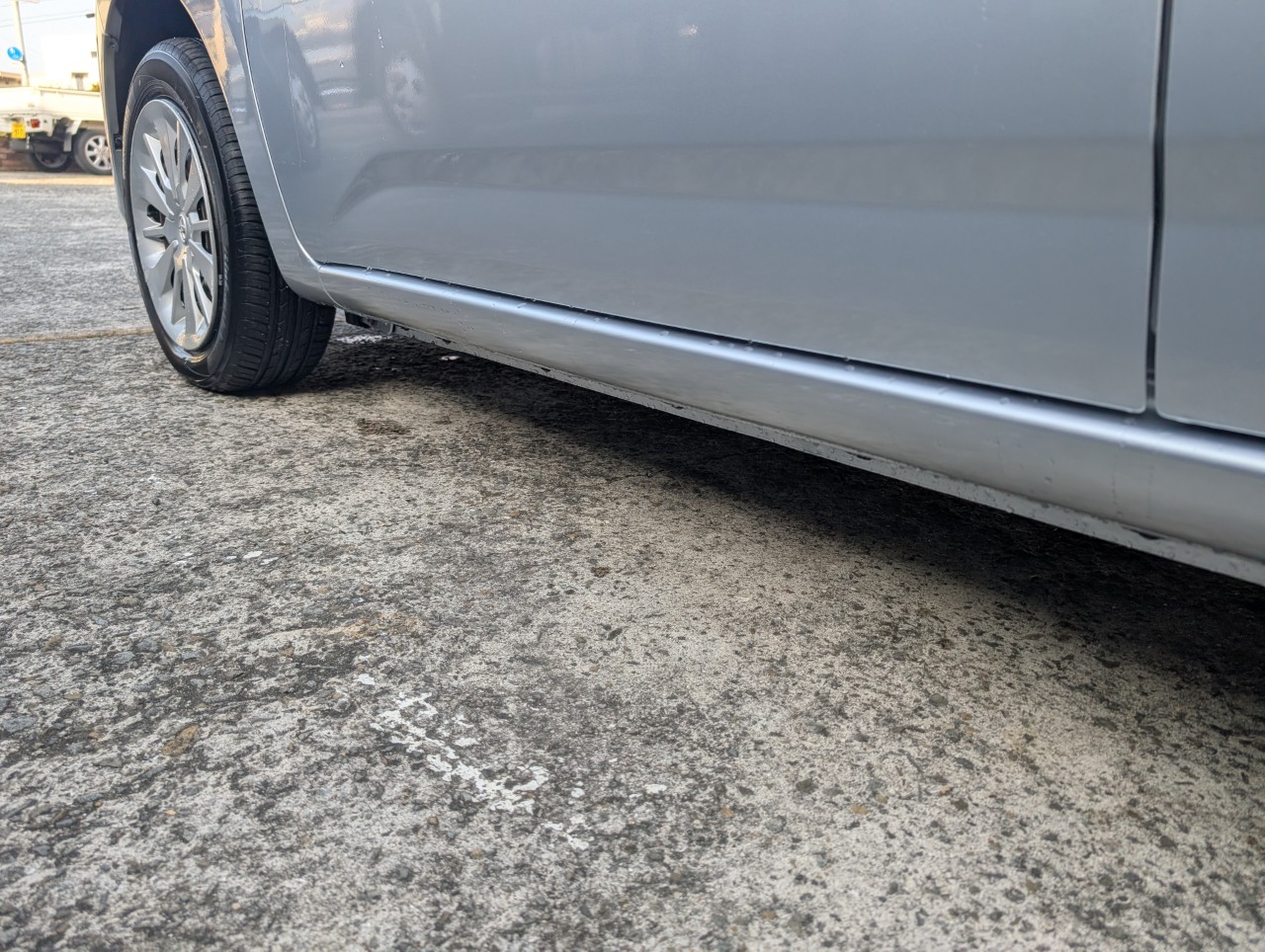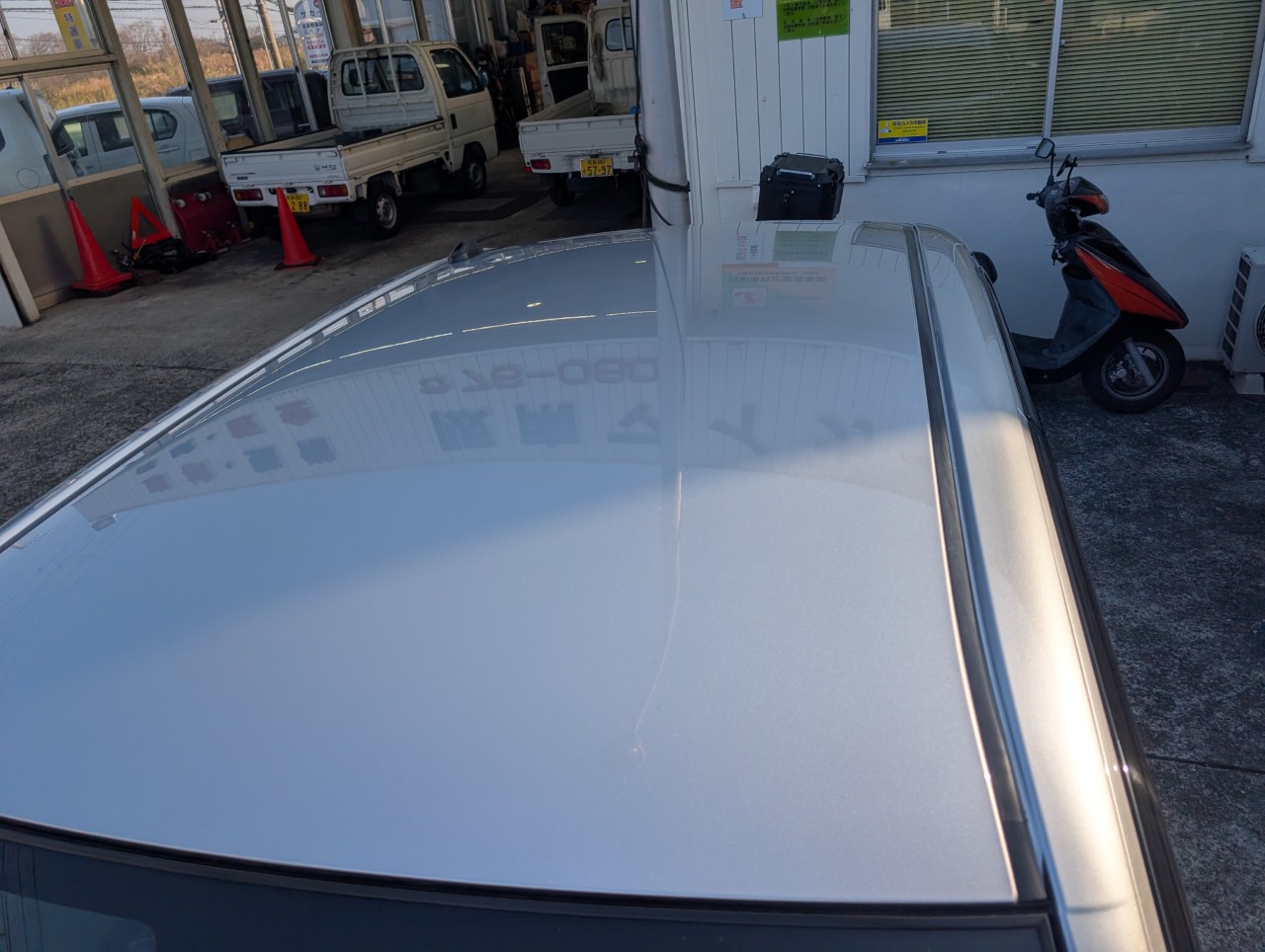 - 助手席側面に凹み傷があったため、助手席~後部座席まで板金塗装を行いました。