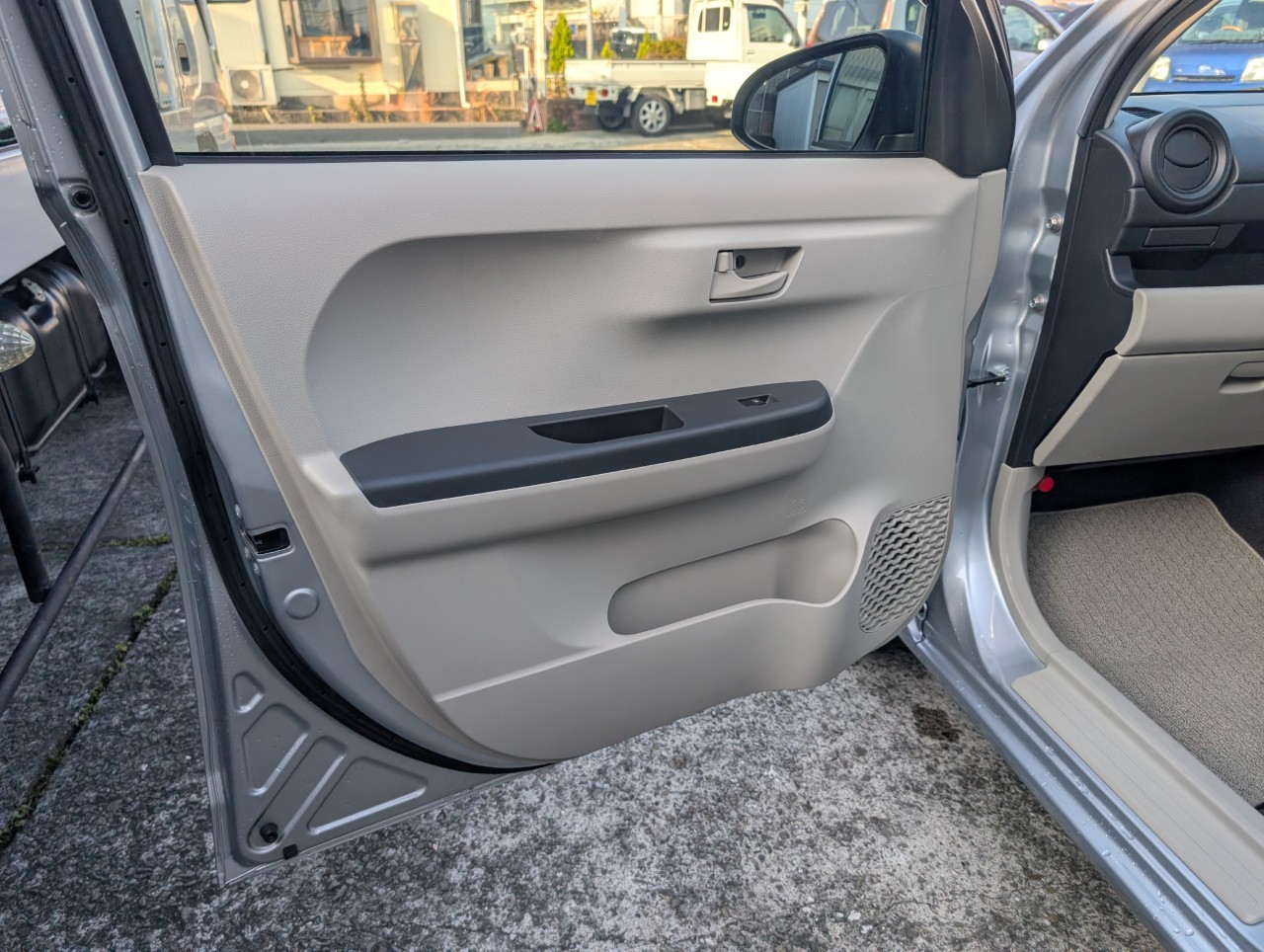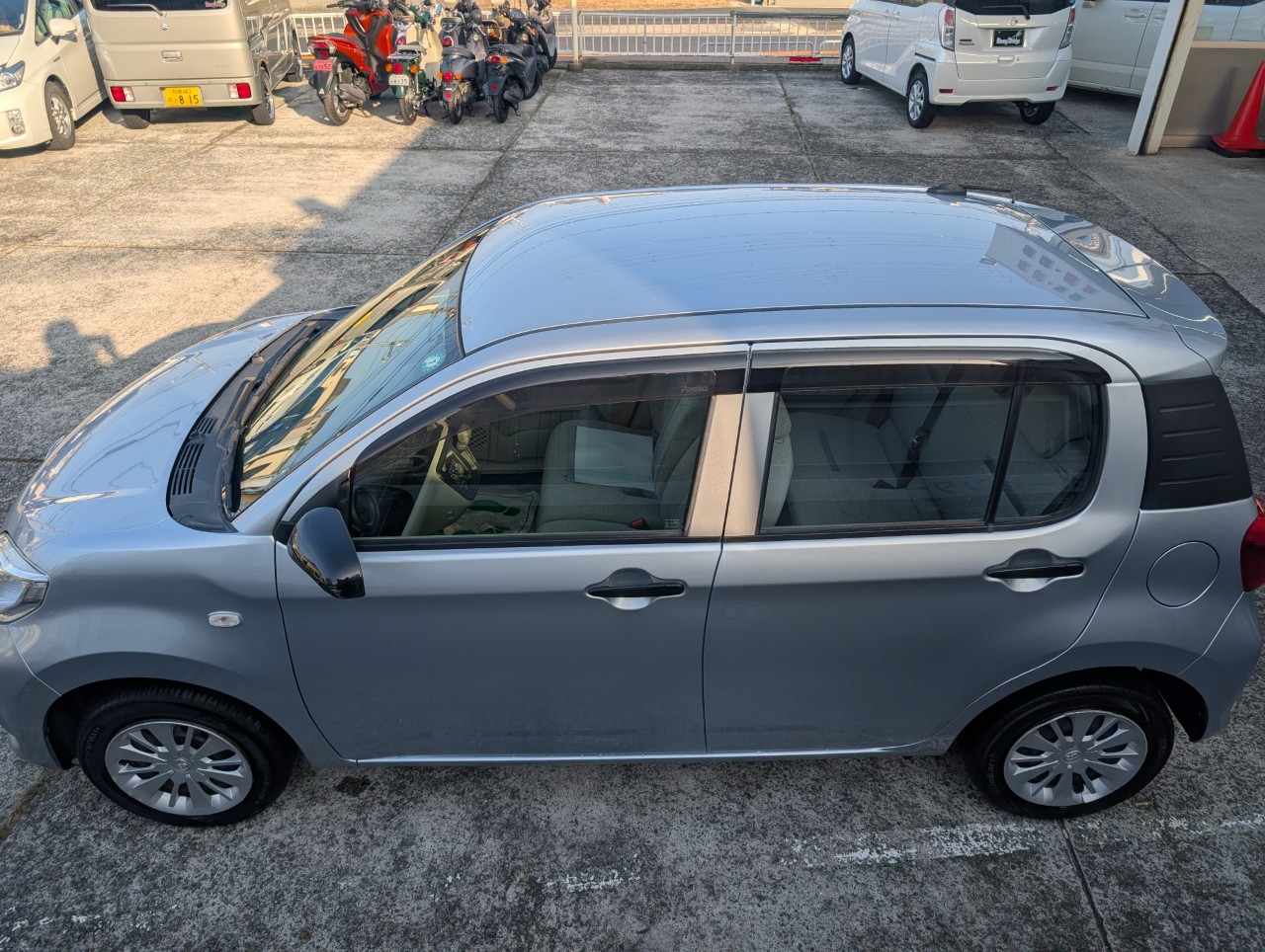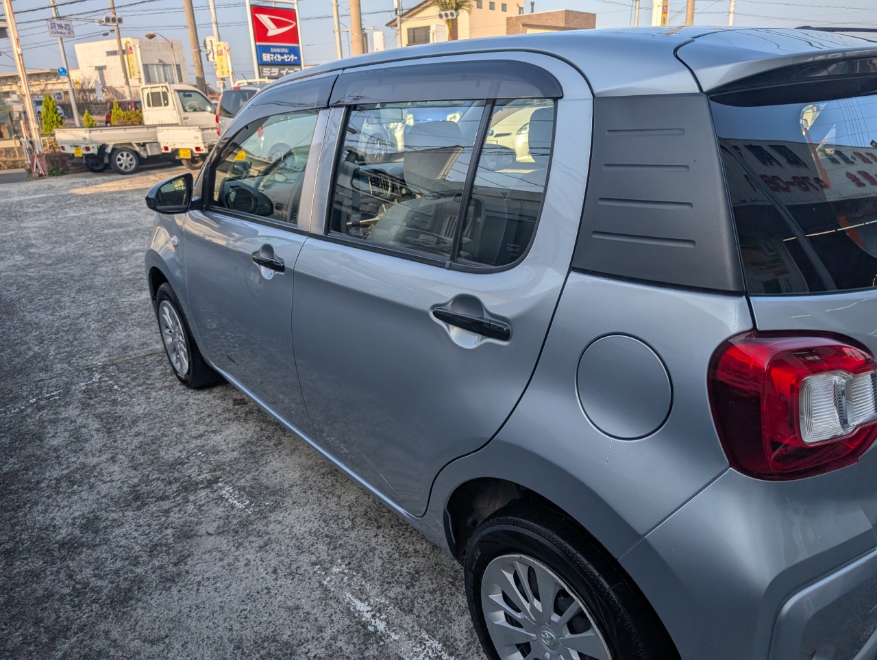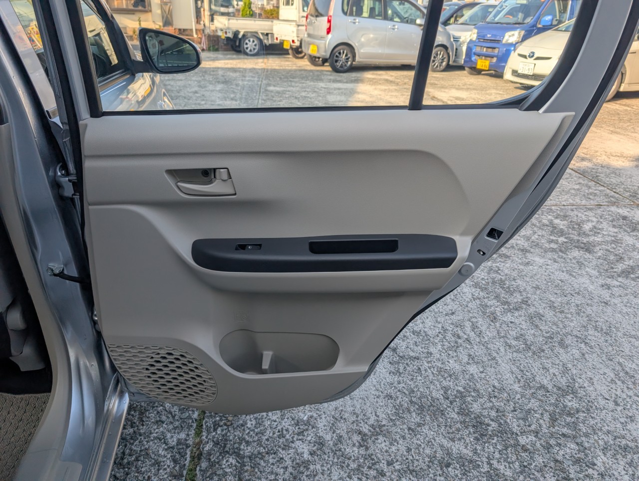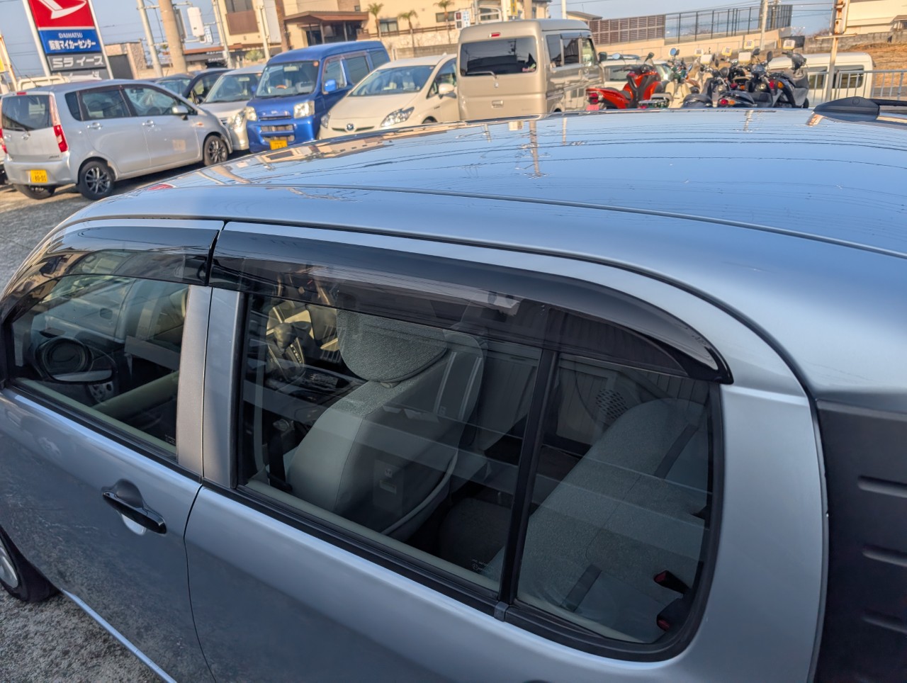 - 助手席側面に凹み傷があったため、助手席~後部座席まで板金塗装を行いました。